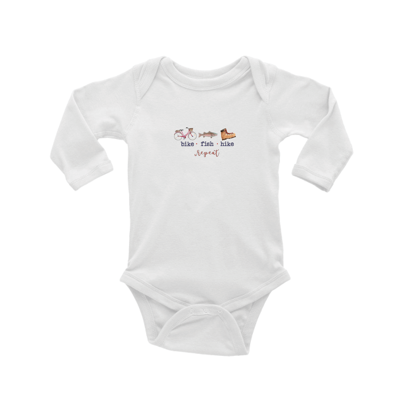 bike fish hike repeat baby snap up long sleeve